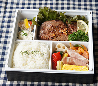 メインだけでなく、副菜も彩りと栄養を考えて。最後までおいしくいただける弁当です。