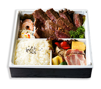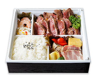松阪牛のステーキを美味しく味わえる プレミアム弁当です。特別なお客様に 味わっていただきたいお弁当。