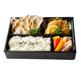 あっさり豚しゃぶと、サーモン&帆立のムニエルのお弁当です。ヘルシーに味わいたい女性にもぴったりです。