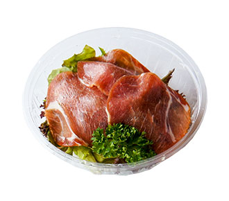 生ハムをたっぷり使った新鮮野菜のサラダです。